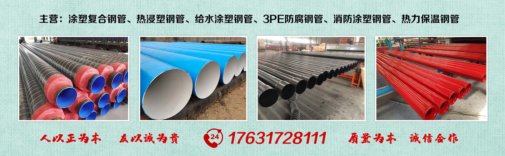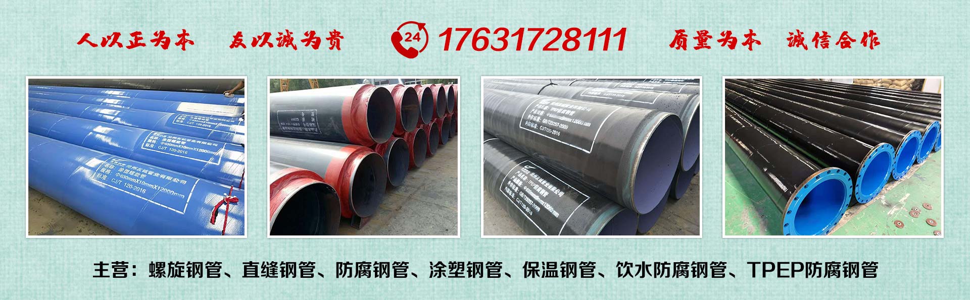 滄州友誠(chéng)管業(yè)有限公司是一家專業(yè)從事生產(chǎn)防腐涂塑管道及管件于一體的大型企業(yè)。公司注冊(cè)資金8600萬元,位于中國(guó)管道生產(chǎn)基地—河北鹽山縣,近靠京滬高速、榮烏高速、黃石高速30公里,高鐵滄州西站40公里,天津國(guó)際機(jī)場(chǎng)、濟(jì)南遙墻機(jī)場(chǎng)150公里,為客戶來訪及業(yè)務(wù)發(fā)展提供了便利的交通條件。        鋼管系列:螺旋鋼管、無縫鋼管、ERW直縫焊管、JCOE埋弧焊直縫鋼管、熱鍍鋅鋼管。        涂塑系列:內(nèi)外涂塑鋼管、涂塑復(fù)合鋼…… 了解更多